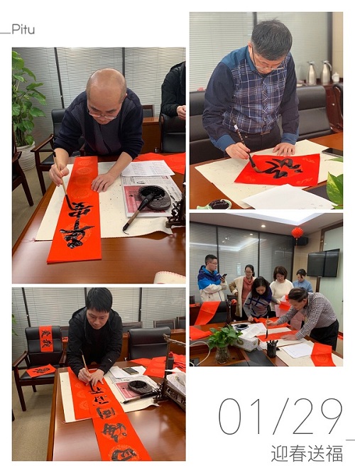 活動(dòng)現(xiàn)場,熱鬧非凡,員工們都爭相排隊(duì)選擇自己喜歡的春聯(lián)。書法達(dá)人們隸楷行草各展所長,墨走龍蛇揮灑自如,為大家書寫春聯(lián)和“?!弊?。一幅幅春聯(lián)映紅了笑臉,一個(gè)個(gè)“?!弊譁嘏诵?。本次活動(dòng)在喜慶氛圍中傳遞濃濃年味的同時(shí),也給大家送去了吉祥、幸福、和諧、美好的祝福。