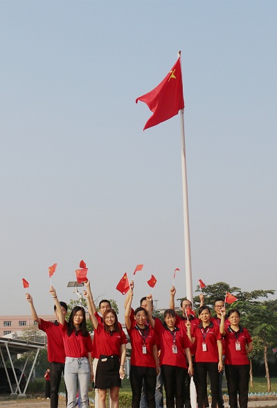 為熱烈慶祝新中國(guó)成立70周年,充分激發(fā)全體員工的愛(ài)國(guó)主義情懷,2019年9月30日上午,福日電子全資子公司深圳市中諾通訊有限公司在東莞以諾工業(yè)園區(qū)舉行了莊嚴(yán)的升國(guó)旗儀式。幾千名員工身著統(tǒng)一紅色司服,排著整齊的方陣。伴隨著雄壯的國(guó)歌聲,鮮艷的五星紅旗冉冉升起,全體員工滿懷崇敬之情向國(guó)旗行注目禮,愛(ài)國(guó)愛(ài)企的激情在大家心中激蕩。升旗儀式結(jié)束后,公司還組織員工開(kāi)展“我與國(guó)旗”同框合影活動(dòng)。