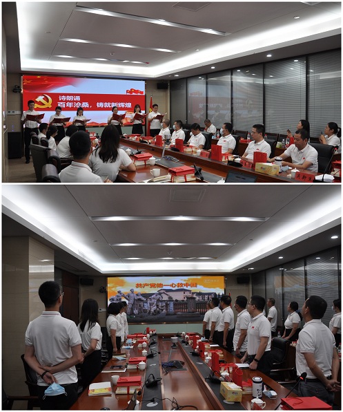 觀看大會直播后,本部黨總支隨即組織了“慶祝中國共產(chǎn)黨百年華誕”主題黨日活動。會上給總支全體黨員發(fā)放了慶祝建黨100周年紀(jì)念品和四史學(xué)習(xí)教育書籍,并由黨員代表現(xiàn)場表演詩朗誦《百年滄桑,鑄就新輝煌》,回顧黨領(lǐng)導(dǎo)人民團(tuán)結(jié)奮進(jìn)、砥礪前行的光輝歷程,感受祖國的發(fā)展成就。活動在《沒有共產(chǎn)黨就沒有新中國》激情飽滿的歌聲中結(jié)束,大家用歌聲唱出了對黨深深的祝福,抒發(fā)了對黨和祖國的熱愛之情,進(jìn)一步堅定聽黨話、跟黨走的決心,凝心聚力推動企業(yè)高質(zhì)量發(fā)展。