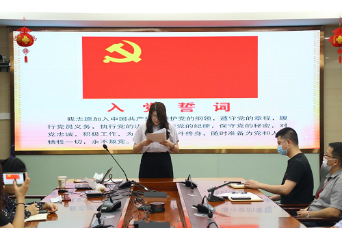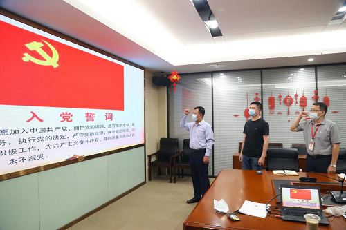 活動(dòng)中,黨員代表和預(yù)備黨員代表分別重溫了入黨志愿書(shū),講述了自己加入中國(guó)共產(chǎn)黨的心路歷程?!拔抑驹讣尤胫袊?guó)共產(chǎn)黨,擁護(hù)黨的綱領(lǐng),遵守黨的章程……”在莊嚴(yán)肅穆的氛圍中,全體黨員在王忠偉書(shū)記帶領(lǐng)下,舉起右手重溫入黨誓詞。這是初心使命的再宣誓,接續(xù)奮斗的再出發(fā)。