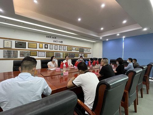 揭牌儀式后,松崗街道辦工作人員與源磊科技進行座談,交流溝通黨支部下階段工作規(guī)劃。張露思詳細了解了新冠肺炎疫情對源磊科技經(jīng)營發(fā)展的影響及現(xiàn)階段存在的困難,對該公司黨建工作提出了建議,并希望下階段吸納更多優(yōu)秀人才加入黨員隊伍,壯大黨組織基礎(chǔ)。