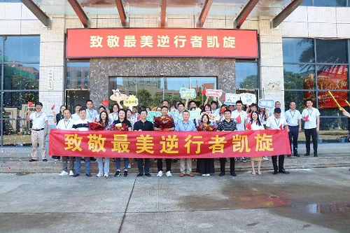 為歡迎公司海外銷售人員凱旋,8月16日,以“致敬最美逆行者”為主題,公司成員企業(yè)邁銳光電舉行歡迎儀式,慰問感謝從美國歸來的公司副總經(jīng)理曾光明帶領(lǐng)的海外銷售團隊。