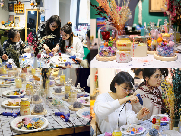 活動(dòng)現(xiàn)場,花藝師就如何安放主花、固定花瓣、插花造型等步驟和技巧等進(jìn)行了詳細(xì)講解。大家選擇好心儀的花材,充分發(fā)揮創(chuàng)意和想象力,精心將每一朵花、每一片葉插放和鋪貼,使原本樸實(shí)無華的花托瞬間花團(tuán)錦簇、生機(jī)盎然?;顒?dòng)中,大家你瞧瞧我的,我看看你的,相互交流搭配心得,在歡聲笑語中完成了一份份精美且獨(dú)一無二的永生花作品。大家手捧親手制作的永生花合影留念,定格美好瞬間。