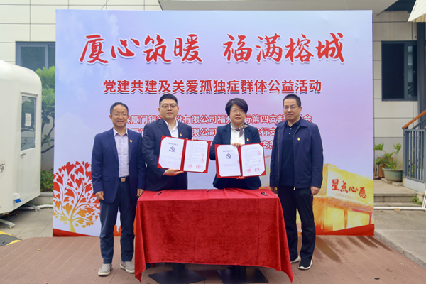 為深化銀企合作,11月11日下午,在福日電子黨委書記、董事長楊韜,黨委副書記、紀(jì)委書記陳富貴以及廈門銀行福州分行副行長鄭成輝的見證下,福日電子本部黨支部分別與廈門銀行第四黨支部、倉山分行黨支部簽訂《黨建共建協(xié)議書》,加強(qiáng)思想共建、促進(jìn)資源共享、實現(xiàn)優(yōu)勢互補(bǔ)。簽約儀式后,雙方黨員代表共同走進(jìn)“星點心愿”支持孤獨癥青年工作公益店,攜手開展“廈心筑暖·福滿榕城——黨建共建暨關(guān)愛孤獨癥群體公益活動”。