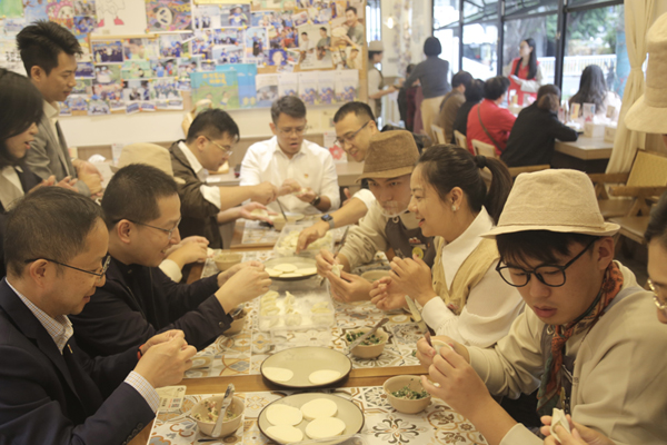隨后,黨員們和“星員工”們圍坐一堂,同包餃子。餃子,是連接孤獨癥青年們與社會的橋梁。將餃子皮平鋪在手心,舀餡、捏褶,指尖翻飛間,一個個餃子便陸續(xù)成型——“星員工”們化身小導(dǎo)師,一絲不茍地向黨員們傳授技巧,現(xiàn)場歡聲笑語不斷,大家也頻頻為“星員工”們嫻熟的技術(shù)點贊。溝通交流中,大家進(jìn)一步提高了對孤獨癥的認(rèn)識,增進(jìn)了對他們的理解和接納。